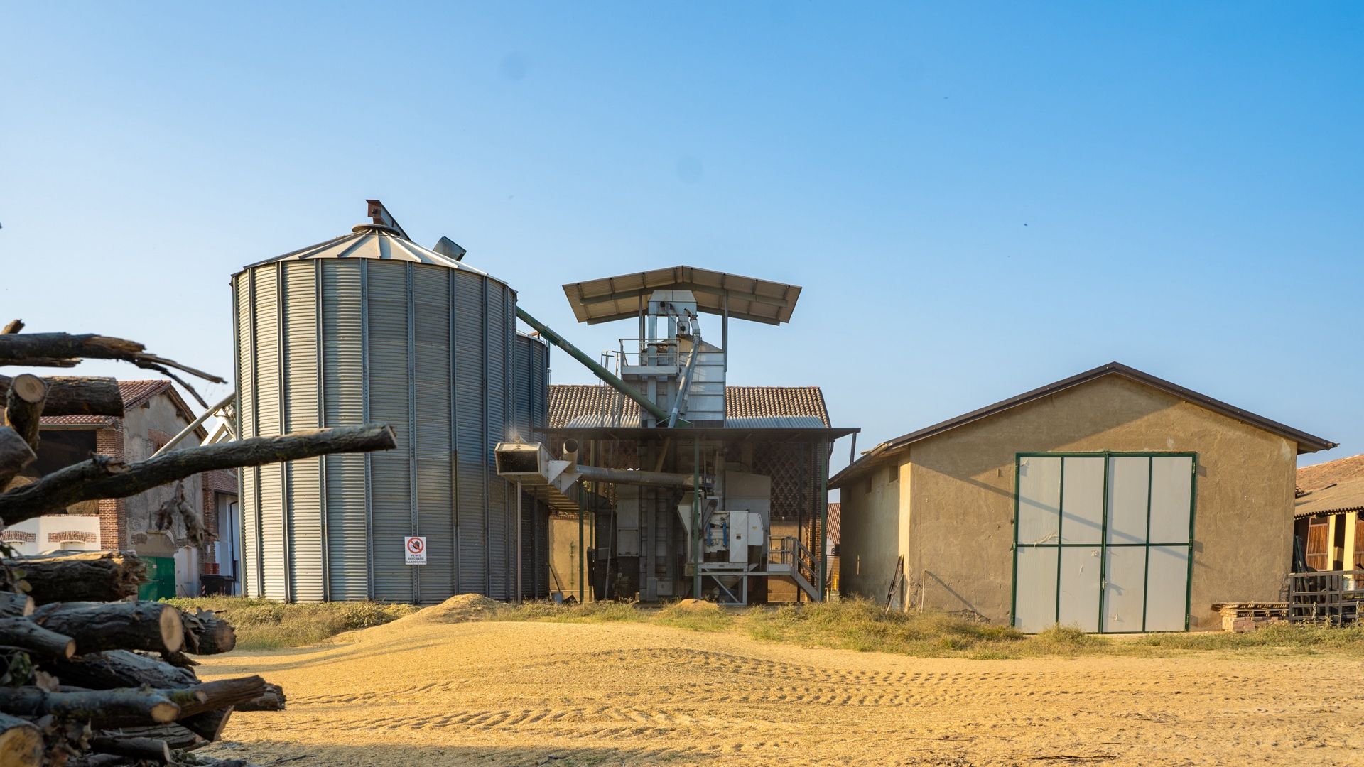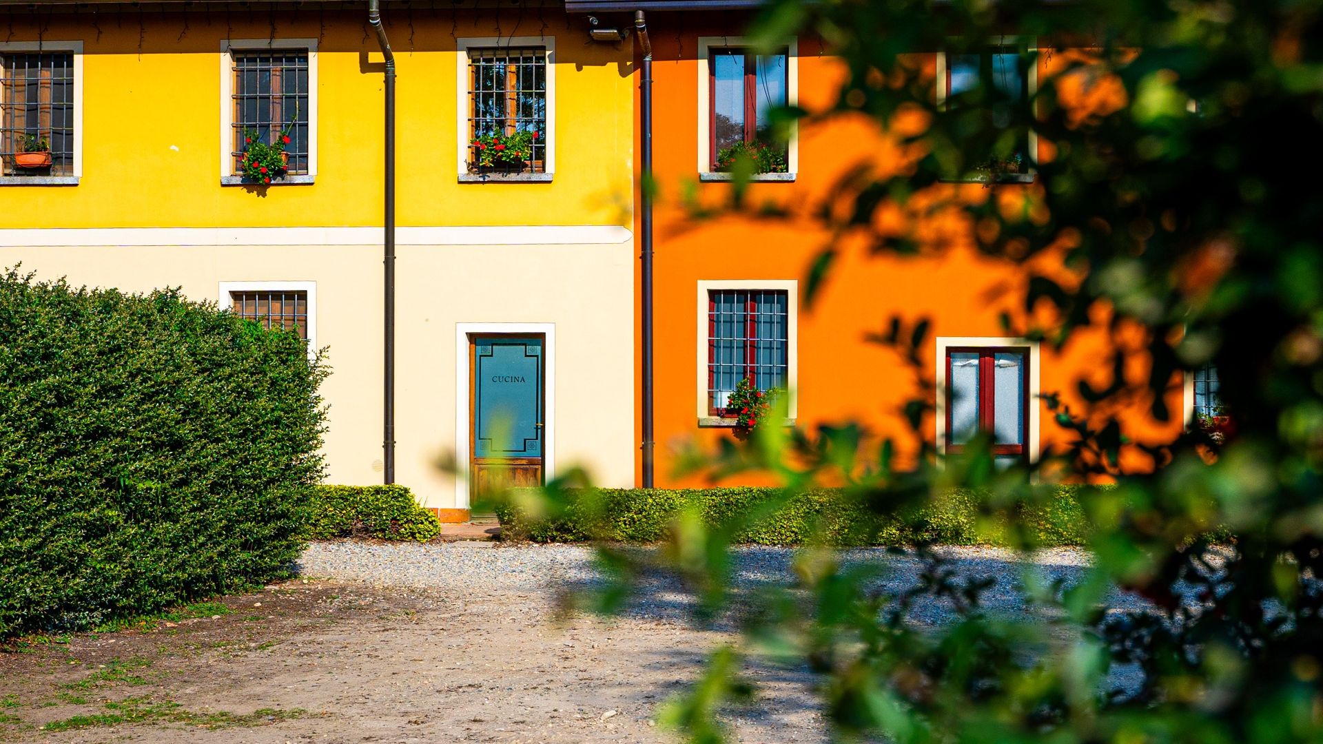 l’imponente struttura a quadrilatero in una azienda risicola, con un agriturismo che